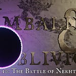 After gathering some supplies, they returned and found that research does not progress very far in a matter of hours when you have to spend time restoring the texts you're reading along the way, even if you're the formidable trio of Nyb’drum, Fisvénir, and Ashtakkrok. The five of them went off to find Melbim in the palace to see what he had to say for himself when the body he claimed to be there was not to be found. Trouble was he’d gone and gotten himself stabbed in the back, alone in his room. Luckily, Ashtakkrok was able to revivify him with only a lot bit of blood being lost. Then, the accusations started flying, guards were dispatched, and Ūpŏnōr tried to break into Mokaro’s room, several times. Melbim did divulge that the body he saw had telltale markings of belonging to the shadowy Vapbian Brotherhood, but there were few answers to be had at the moment. In the end, it was decided that Melbim perpetuate the ruse that he had been killed, remaining hidden within the palace grounds, and Mokaro return to the Kisstaylnryd, as if to escape looming danger. The session ended with the party making their way into the palace grounds to meet for the first time with King Jōlahr. And with that, you’re caught up for today’s episode of Umbalin & Oblivion.